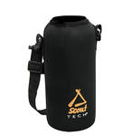 Con tappo a pressione. Rivestita in panno con pratica tracolla